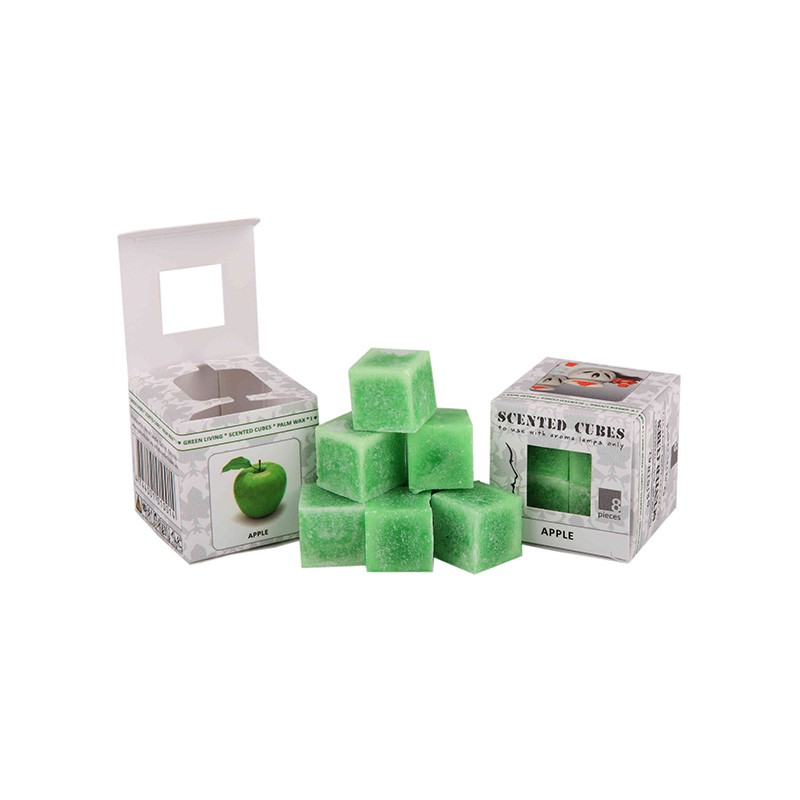 Scented Cubes Apfel, 8 Duftwürfel in einem kleinen Karton. Mit einer Größe von nur 15 mm sind Scented Cubes besonders praktisch – sie lassen sich als Basisdüfte optimal kombinieren. Der Kreativität sind keine Grenzen gesetzt. „ACHTUNG: Bitte beachten Sie bei der Auswahl der Duftlampe eine Höhe der Lampe von ca. 12 cm. Nur so können Scented Cubes ihre volle Wirkung entfalten!“ Unser Produkt ist aus natürlichem, ökologisch angebautem Palmwachs. Dieser Rohstoff wächst nach und ist sauber.