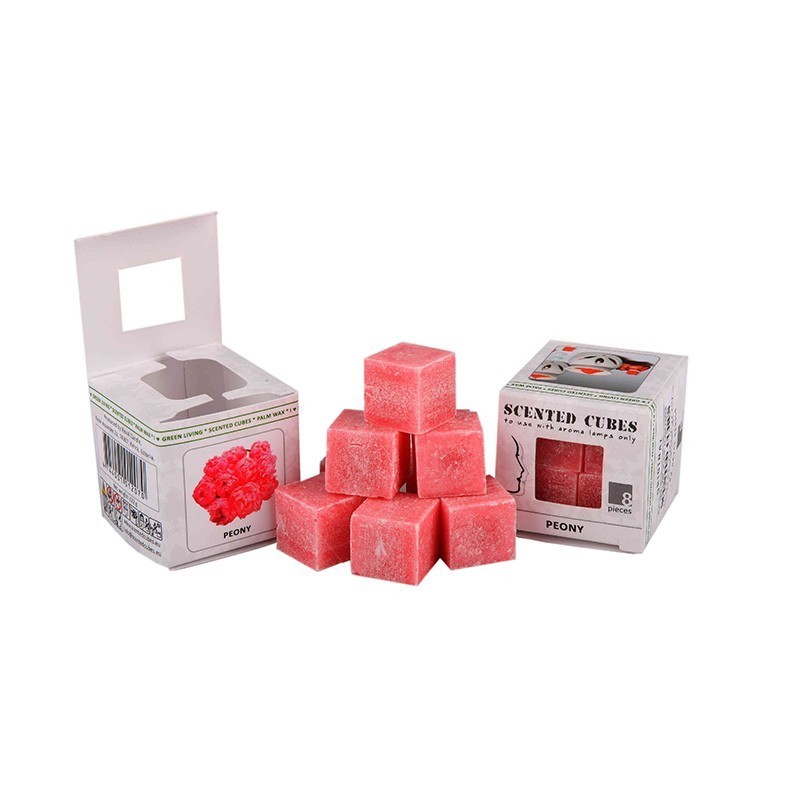 Scented Cubes Pfingstrose, 8 Duftwürfel in einem kleinen Karton. Mit einer Größe von nur 15 mm sind Scented Cubes besonders praktisch – sie lassen sich als Basisdüfte optimal kombinieren. Der Kreativität sind keine Grenzen gesetzt. „ACHTUNG: Bitte beachten Sie bei der Auswahl der Duftlampe eine Höhe der Lampe von ca. 12 cm. Nur so können Scented Cubes ihre volle Wirkung entfalten!“ Unser Produkt ist aus natürlichem, ökologisch angebautem Palmwachs. Dieser Rohstoff wächst nach und ist sauber.