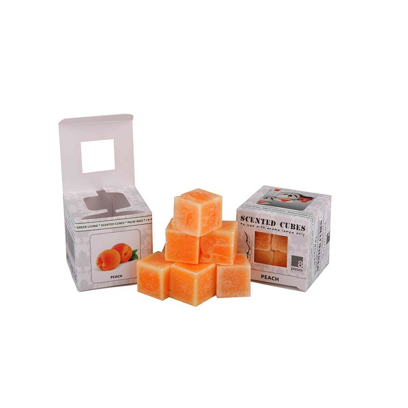 Scented Cubes Pfirsich, 8 Duftwürfel in einem kleinen Karton. Mit einer Größe von nur 15 mm sind Scented Cubes besonders praktisch – sie lassen sich als Basisdüfte optimal kombinieren. Der Kreativität sind keine Grenzen gesetzt. „ACHTUNG: Bitte beachten Sie bei der Auswahl der Duftlampe eine Höhe der Lampe von ca. 12 cm. Nur so können Scented Cubes ihre volle Wirkung entfalten!“ Unser Produkt ist aus natürlichem, ökologisch angebautem Palmwachs. Dieser Rohstoff wächst nach und ist sauber.
