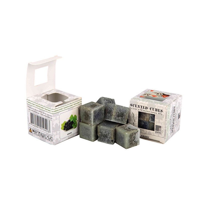 Scented Cubes Traube, 8 Duftwürfel in einem kleinen Karton. Mit einer Größe von nur 15 mm sind Scented Cubes besonders praktisch – sie lassen sich als Basisdüfte optimal kombinieren. Der Kreativität sind keine Grenzen gesetzt. „ACHTUNG: Bitte beachten Sie bei der Auswahl der Duftlampe eine Höhe der Lampe von ca. 12 cm. Nur so können Scented Cubes ihre volle Wirkung entfalten!“ Unser Produkt ist aus natürlichem, ökologisch angebautem Palmwachs. Dieser Rohstoff wächst nach und ist sauber.